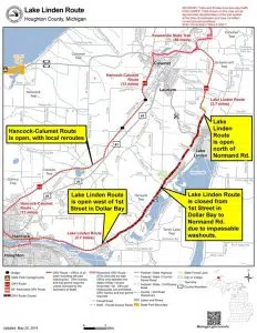 Washouts have forced the Michigan Department of Natural Resources to close of a portion of the Lake Linden Off-Road Vehicle Route in Houghton County.