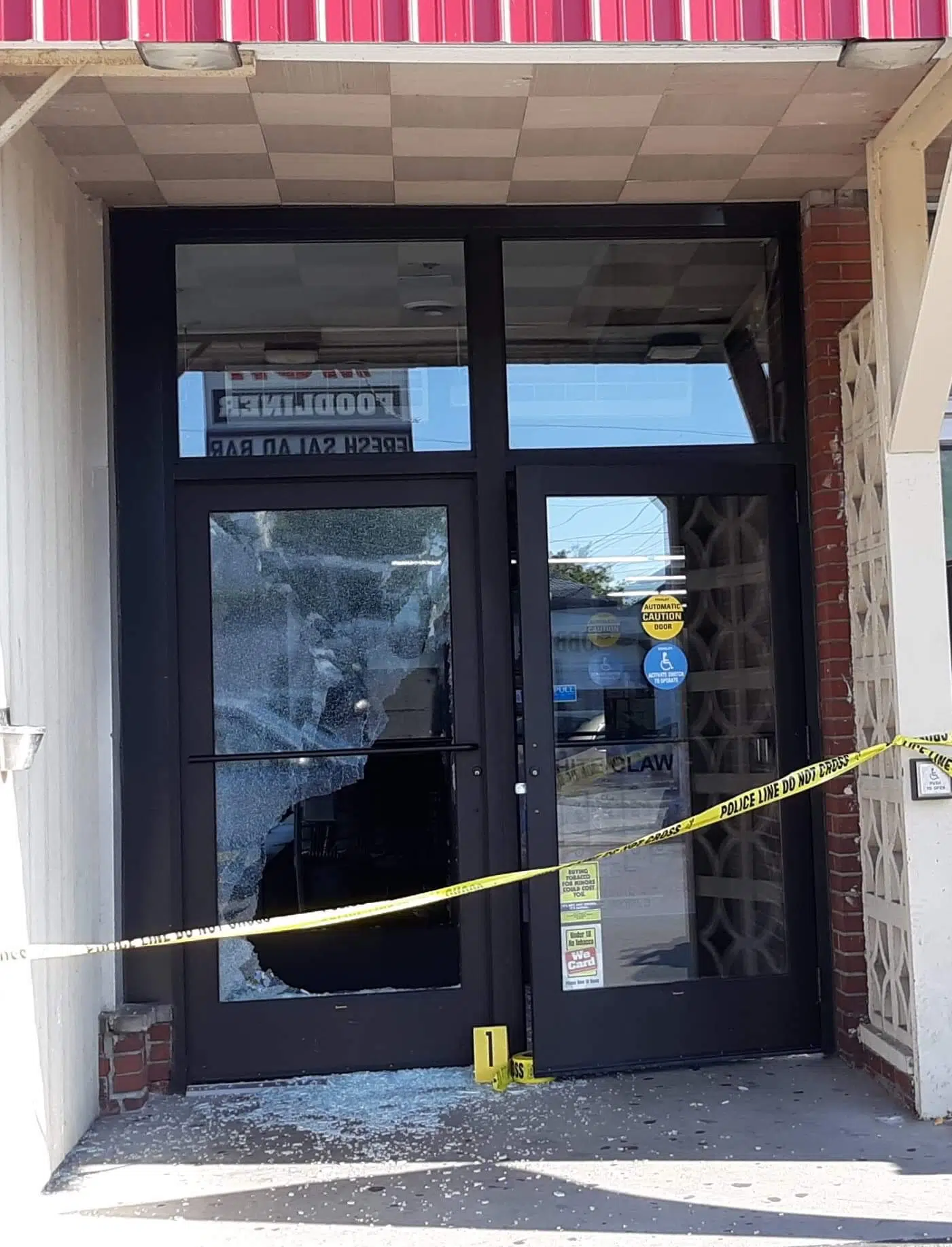 Upon arrival, Officers observed the glass entry doors smashed. Officers entered the store to search the premises and found no one inside.