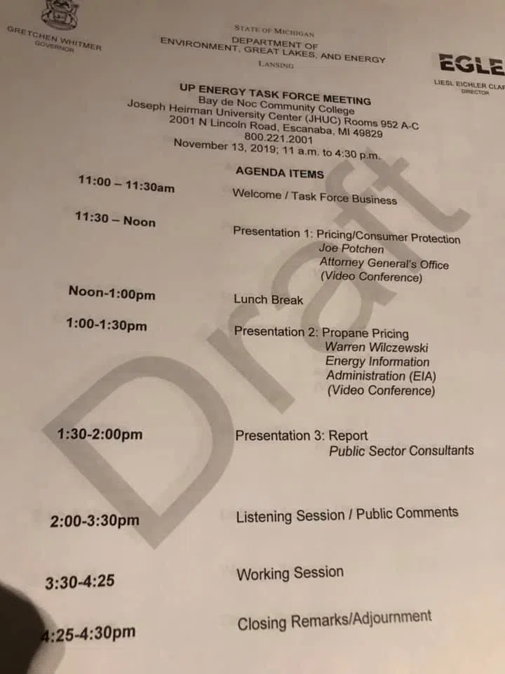 But the 19-member panel did hear from several people who spoke about solar energy and the high cost of propane in the Upper Peninsula.