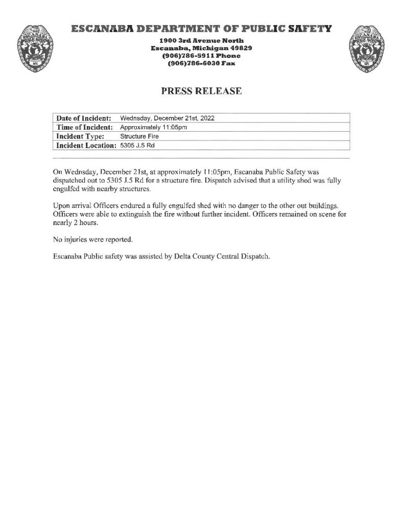 A stoage shed caught fire late Wednesdsy night in Escanaba.