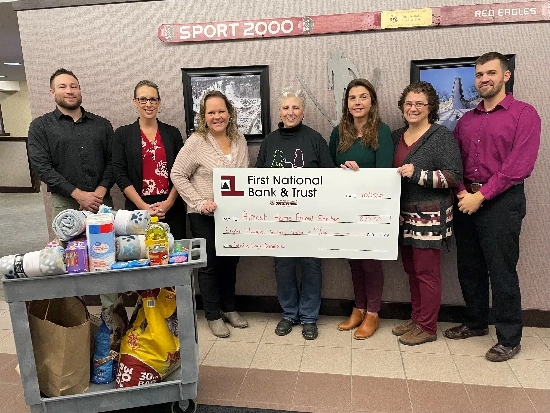 First National Bank & Trust, in partnership with The Scott Sanders Agency, Arlington Roe Insurance Broker, and American Bankers Association Insurance Services are pleased to announce joint donations to the Almost Home Animal Shelter.