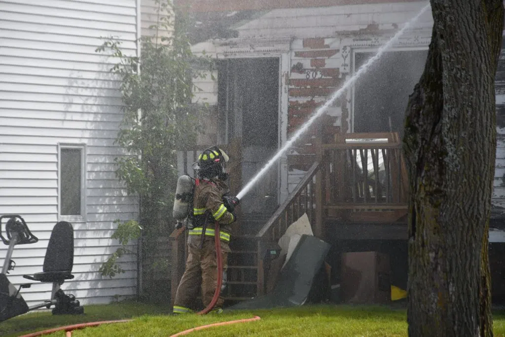 Public Safety says the call came in at around 2:30 to come to 803 1st Avenue North with flames shooting from the roof of that two-story building. Public Safety helped residents get out of the adjacent apartment complex because it, too, started to catch fire.