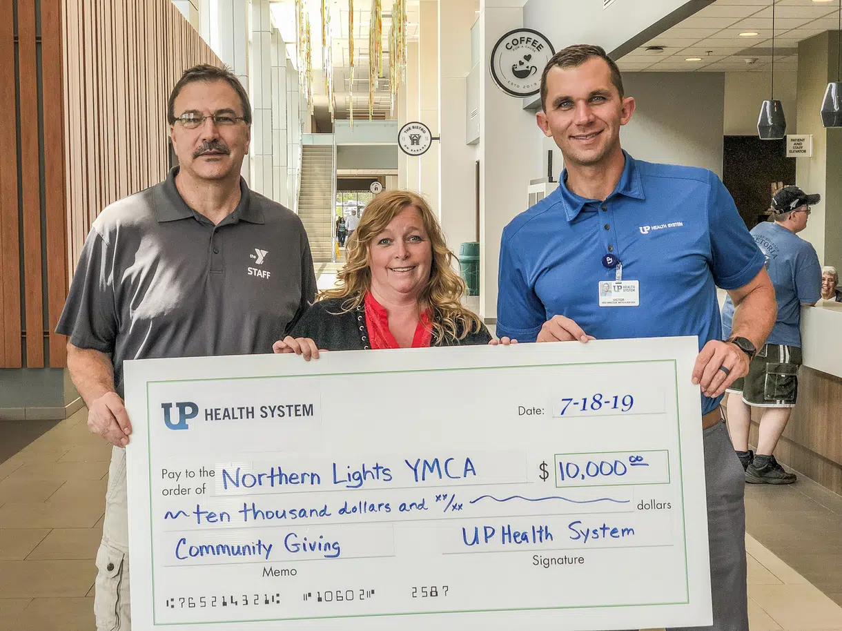 UP Health System - Marquette donated $10,000 to the Northern Lights YMCA for the mission of continuing to build healthier communities. Victor Harrington, Regional Director of Marketing and Business De...