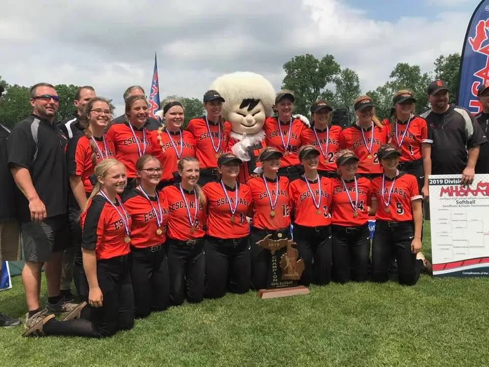 The Escanaba High School softball team won a second straight state championship on Saturday, outlasting the Stevensville-Lakeshore Lancers, 7-3, at Michigan State University's Secchia Stadium. Gabi Sa...