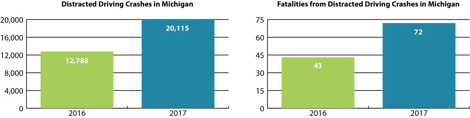 Michigan saw a 57 percent increase in distracted driving crashes and a 67 percent increase in fatalities from those crashes from 2016 to 2017, according to the Michigan State Police (MSP) Criminal Jus...