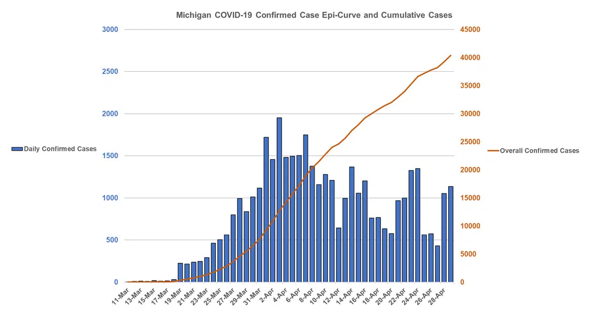 The Michigan Department of Health and Human Services reported Wednesday afternoon that the state's total number of confirmed coronavirus cases has increased to 40,399, which is 1,137 more cases in the...