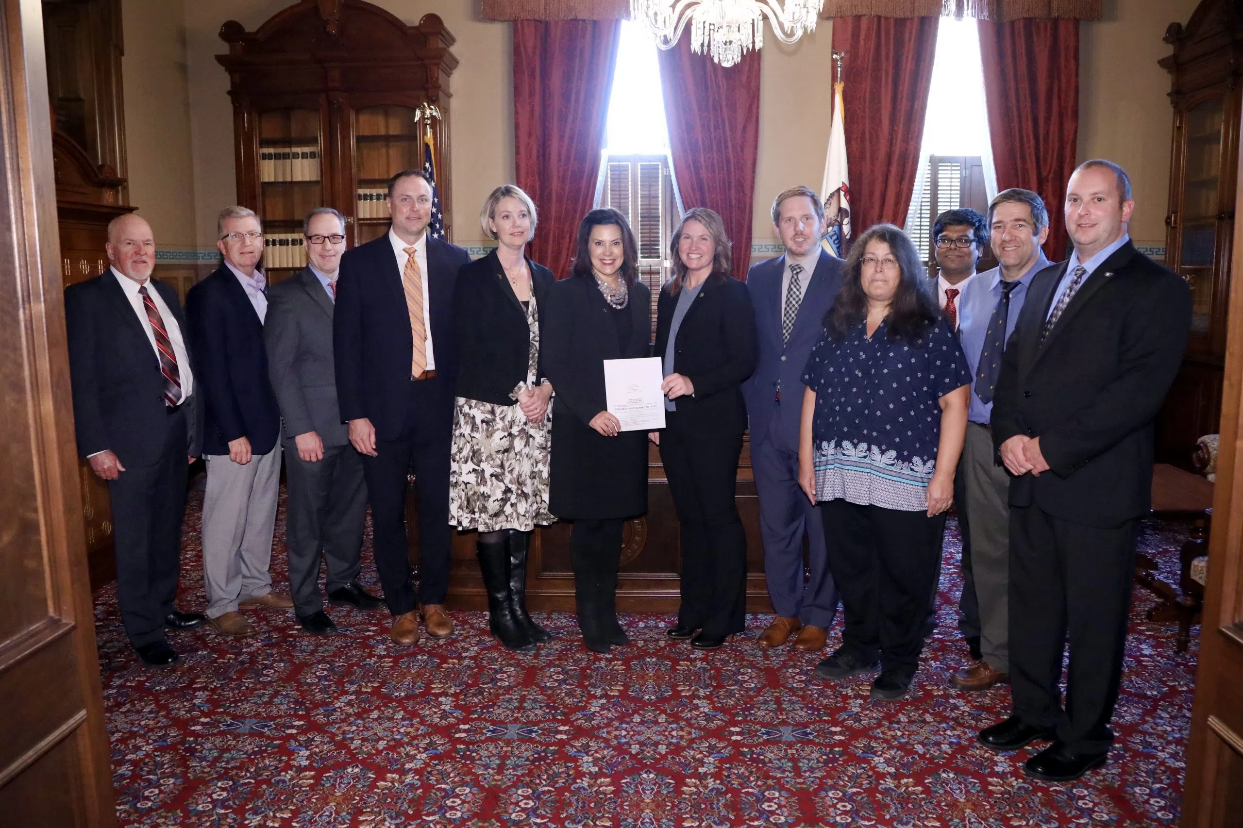The Committee on Michigan's Mining Future marked its first informal meeting in Lansing on Wednesday, Oct. 23, with a ceremonial photograph with Gov. Gretchen Whitmer and Rep. Sara Cambensy (D-Marquett...
