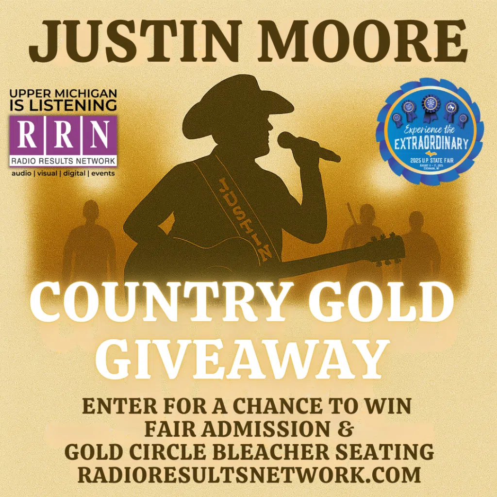 Boots, ballads, and the sound of real country. Justin Moore takes the stage Friday, August 15th at the U.P. State Fair—and you could be there in style. Enter to win fair admission and Gold Circle Bleacher Seating and make it a night you won’t forget.